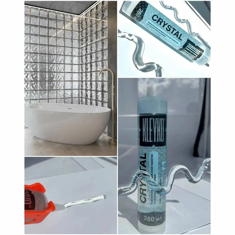 KLEYKO CRYSTAL идеально подходит для склеивания стеклянного кирпича и приклейки зеркал, имитируя 100% прозрачный стеклянный шов. Подходит для применения внутри и снаружи зданий. Предназначен для герметизации вертикальных и горизонтальных швов, герметизации швов в стеклянных и строительных конструкциях, таких как деформационные и конструктивные, изоляционные швы вокруг окон и дверей, фасадных элементов, оболочек и др., в бетонных, кирпичных, деревянных, металлических конструкциях и конструкциях из ПВХ, а также для вентиляции. Структурное склеивание в вибростойких конструкциях. Склеивание и герметизация натурального камня (мрамор, гранит и т.д.).